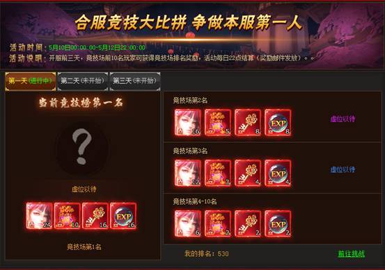 活动期间竞技场比拼再次开启,玩家只要参与就有机会获得千万经验、限量美人!!!