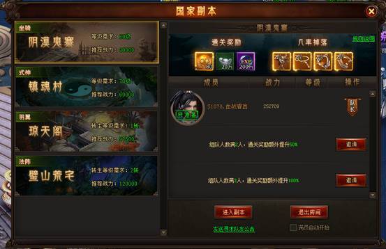 这两类副本是日常玩家每日必须要做的副本,通关后可以获得大量的银两和经验加成,其中经验轮回副本随着玩家击杀的怪物数量的不同,经验也会有不同的提升,击杀的越多,经验奖励就越多!