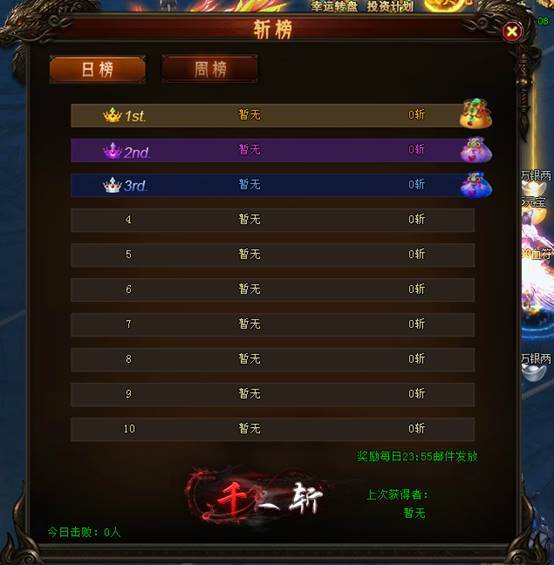 2、日榜每天23:55分结算,结算时对前三名发放大量道具奖励