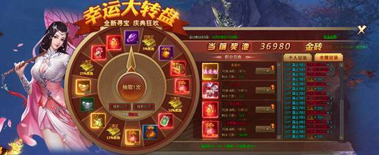 《阴阳道》公测期间,玩家通过参与幸运大转盘,即有机会获得金砖奖池中的金砖奖励!没有上限!!!抽到就是赚到!!!