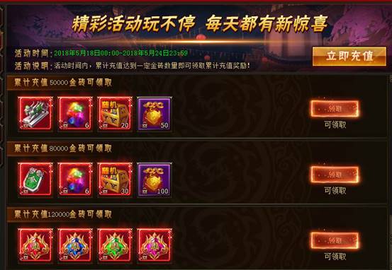 公测豪礼2:累计充值送豪礼,顶品红装全白送