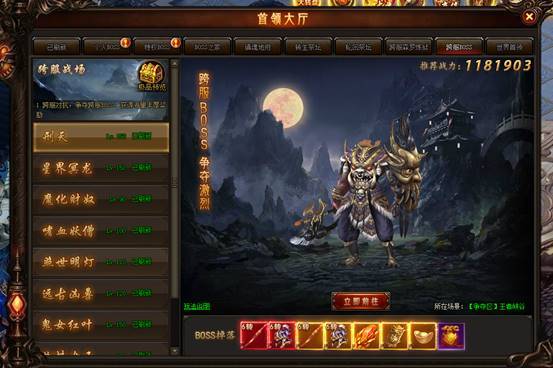 跨服BOSS是产出红装合成材料的主要途径、BOSS会掉落大量的高级橙色装备以及材料,同时还几率产出战场装备碎片,供玩家养成战场装备,提升更高的战力