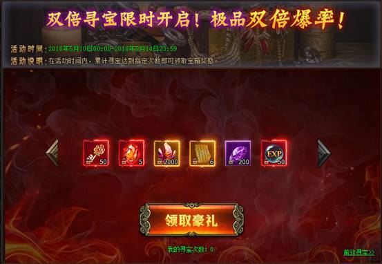 活动期间,上古秘宝极品道具概率翻倍!且累计参与制定次数后即可领取额外海量材料奖励